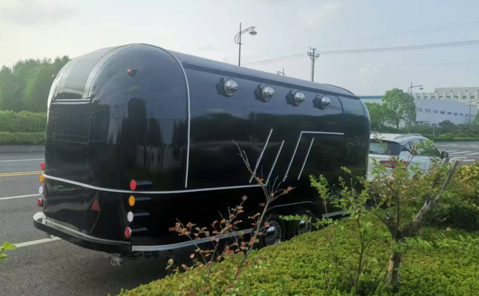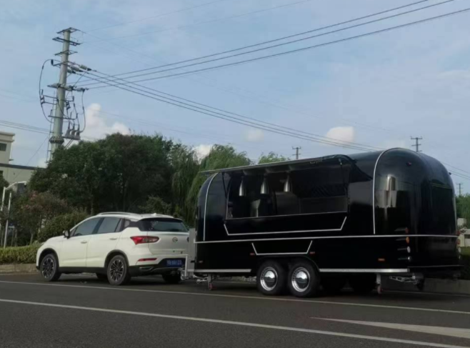 Customized black food trailer for European customer